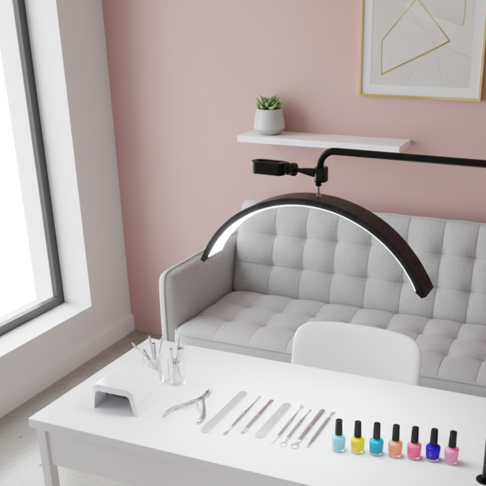 Apportez une lumière professionnelle et modulable à vos vidéos, salons de beauté ou espaces de travail avec le lampadaire SOLUNA. Son design demi-lune moderne et ses finitions métalliques élégantes offrent un éclairage puissant et flexible, idéal pour le live streaming, le maquillage, ou toute activité nécessitant une lumière uniforme et douce.