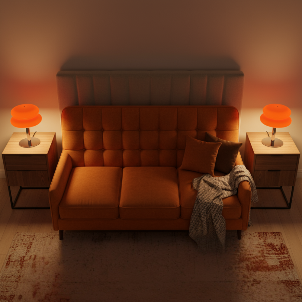 La lumière douce diffusée par LIVARA est idéale pour favoriser la détente en fin de journée. Son ampoule LED fournie assure une luminosité stable, sans scintillement, parfaite pour lire, se relaxer ou simplement créer une ambiance tamisée dans la pièce. L’abat-jour en verre coloré filtre délicatement la lumière, offrant une atmosphère intime et chaleureuse.