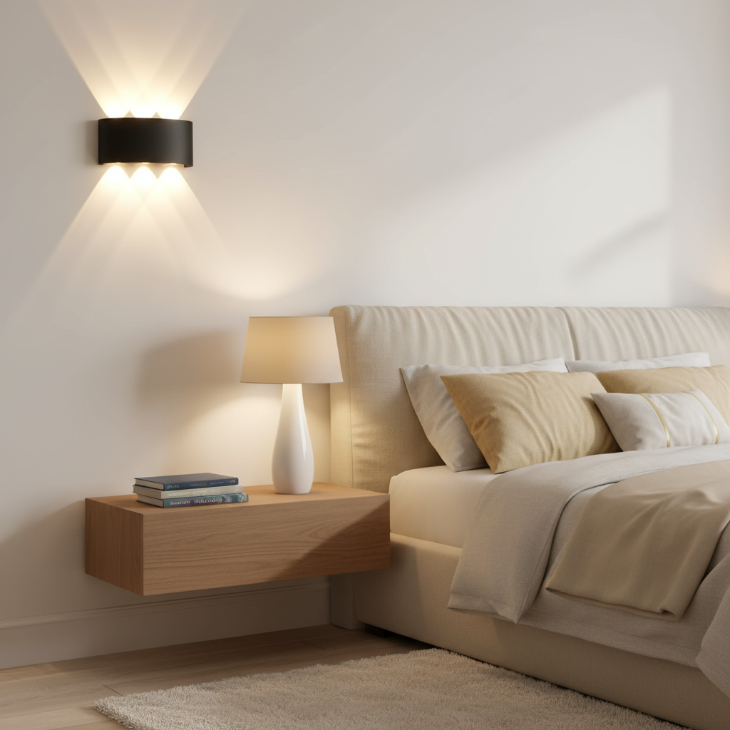 Avec son choix d'options de température de couleur (3000K lumière chaude et 6000K lumière froide) et sa double diffusion vers le haut et le bas, cette lampe murale éclaire efficacement une surface de 3 à 5 m², idéale pour extérieur, couloirs, salons, chambres, cuisines ou salles de bains.